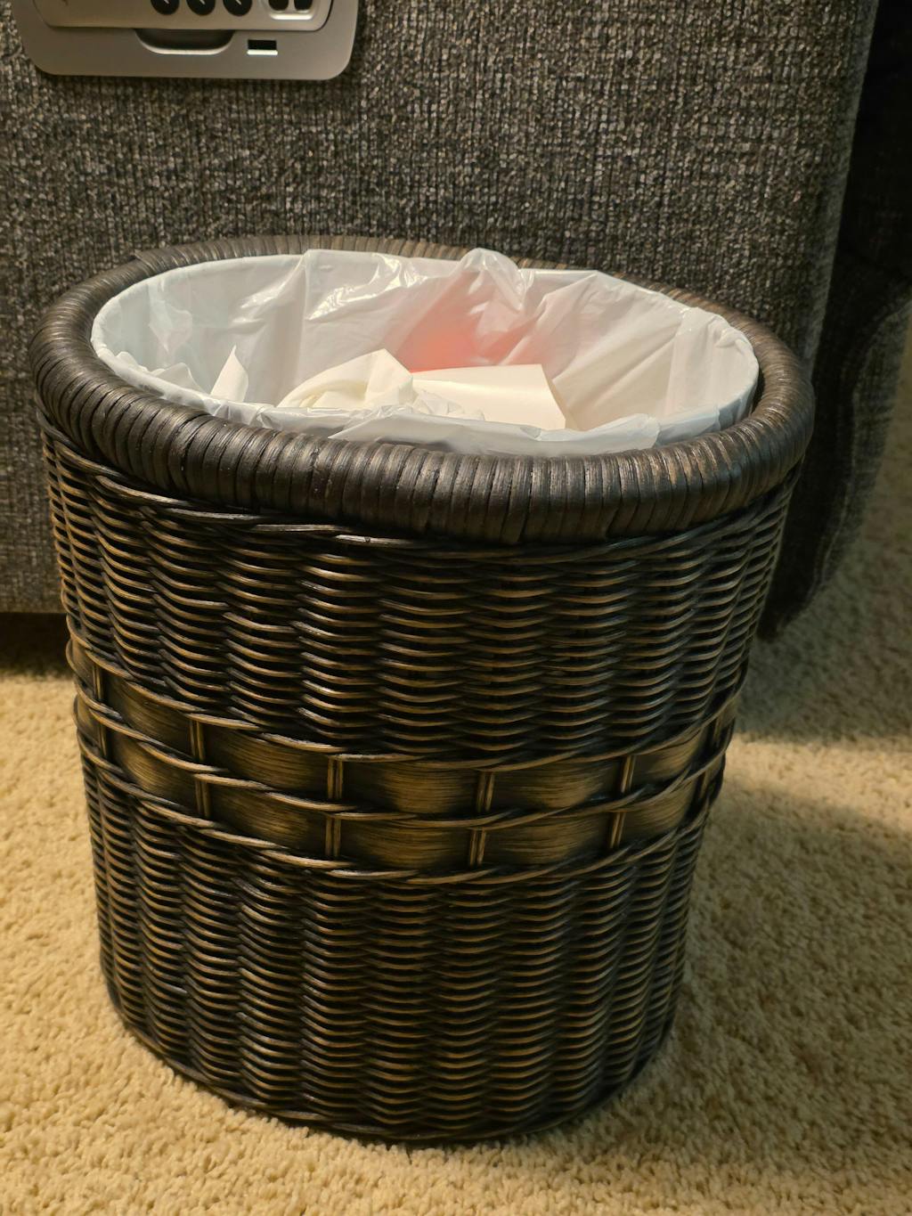 Looking for a softer style in your waste and recycling basket? Our oval-shaped wastebasket looks fantastic in the kitchen, bathroom, bedroom, office or entryway. Its features an unusually detailed rattan weave that’s designed both for beauty and functionality. Plus, the trash bin basket also features a metal liner that’s removable and helps hold a 4-gal small trash bag inside for a liner.